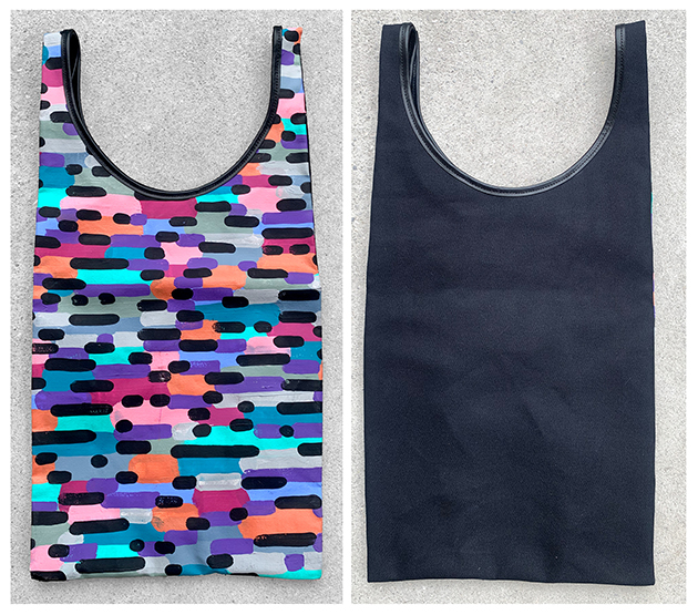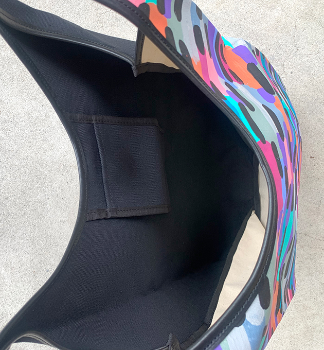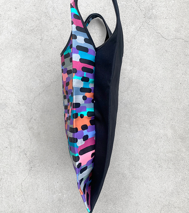 カラフルな模様を描いたキャンバス作品を解体して、職人による丁寧な縫製でシンプルで頑丈な極上の仕上がりとなっております。