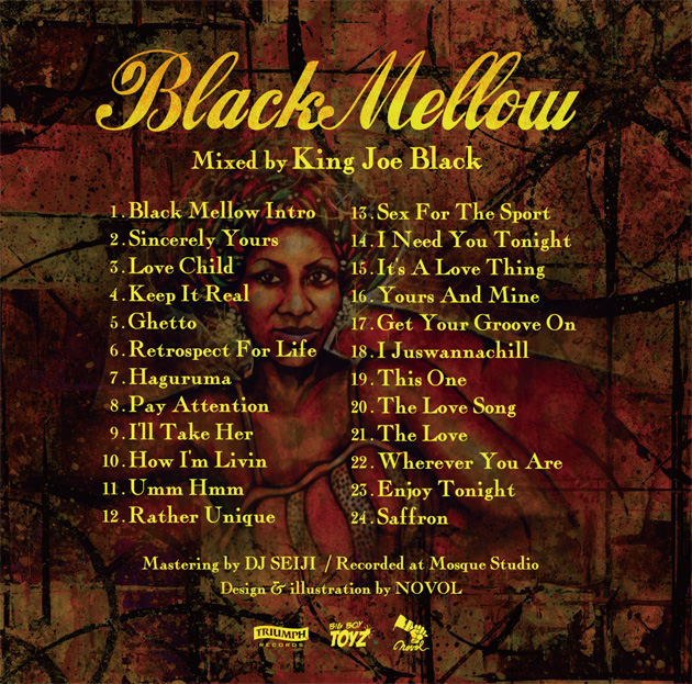 2013年、世界情勢が不安定な今ご時世、突如アンダーグランドシーンに現れたメッセンジャー;King Joe Black(キングジョーブラック=B.I.G.JOEのDJネーム) が提唱する今回のHip Hopミックスは、彼の膨大なアーカイブの中から厳選され、新旧織り混ぜた極上メローなクラシックチューン全25曲をまとめたのが今ミックスCDだ。ミックスをリリースするのは久しぶりで、毎月第三金曜日にBootyにて行われているレギュラーイベント「The Crib」にDJとして参加している彼だけあって、ブラックネス感じる選曲、分かっている感はキングたる所以だろう。やはりキングが選曲すればこうなるというものだ。今現在、混迷している世界は究極に"癒し"を求めていると感じているキングは、メローなHip Hopが持つメッセージでこの世界を究極に癒そうとしている。